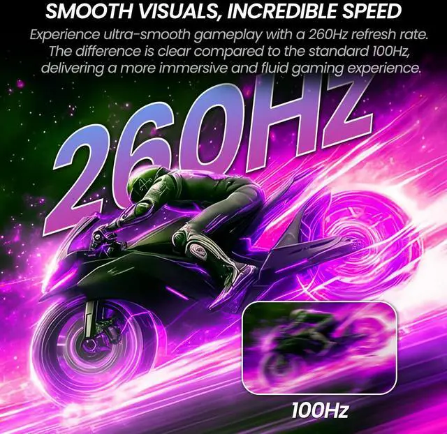 260HZ Curved Gaming Monitor: Outpace your opponents with this 27-inch gaming monitor featuring a 260Hz high refresh ratenearly 4× faster than standard 60Hz displays. Every frame updates faster for smoother motion, helping you track enemies and react instantly. Paired with AMD FreeSync, it eliminates screen tearing and stutter, ensuring fluid, uninterrupted gameplayperfect for FPS and eSports titles