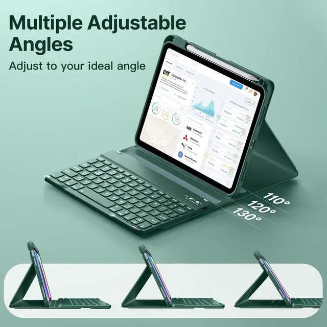 Long-life Rechargeable Keyboard Keyboard for iPad 10th generation has a built-in rechargeable lithium battery, no replacements needed, saves hassle from frequent purchases. Fully charges in 23 hours, lasts up to 72 hours, and auto-sleeps after 15 minutes unused to save power (wakes instantl
