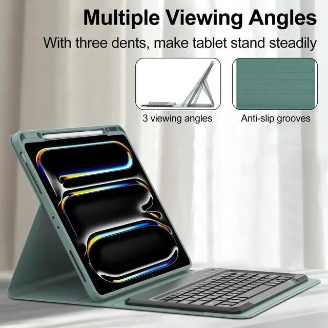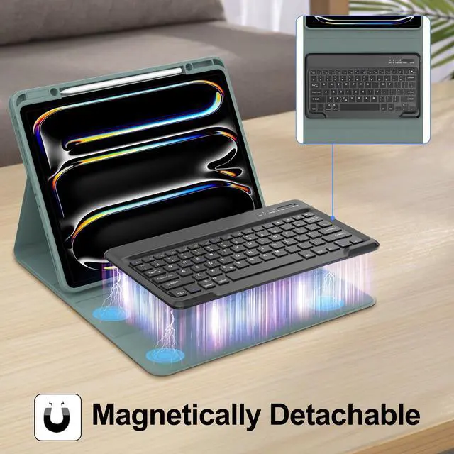 3. iPad Pro 13 inch Case with Keyboard (M4, 2024), Magnetic Detachable Wireless Bluetooth Keyboard, Slim Folio Cover with Pencil Holder for New iPad Pro 13 inch, Auto Sleep/Wake, Long Battery Life-Green