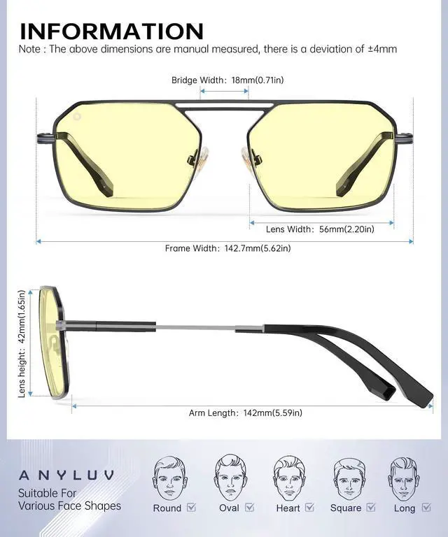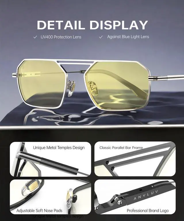 Fashionable and classic design: This men's anti-blue light glasses ingeniously blend traditional and modern elements and incorporate exquisite design details. The double eyebrow bridge and the temple temples decorated with the ANYLUV logo all exude exquisite fashion. This men's anti-blue light glasses can better showcase a refined and elegant demeanor. They are suitable for various scenarios and complement any outfit perfectly.
