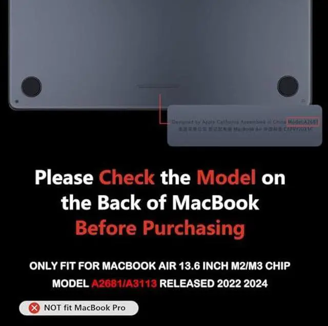 Case Special::Case Only for M3/M2 Chip MacBook Air 13.6 inch 2022 2024 release.Model Numbers: A3113/A2681.Note: different models correspond to different case,please check the model number on the back of your laptop carefully