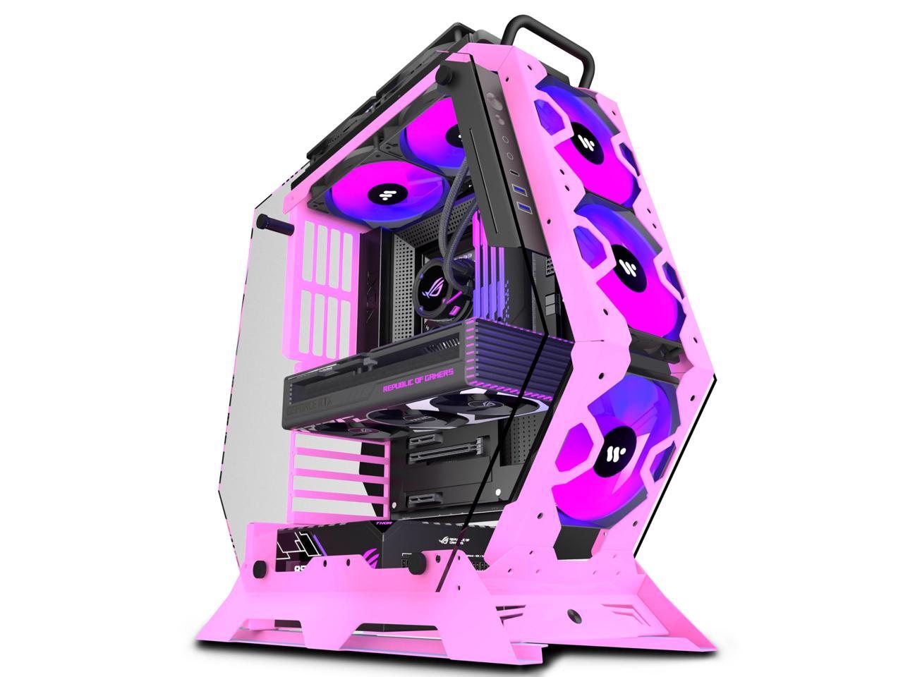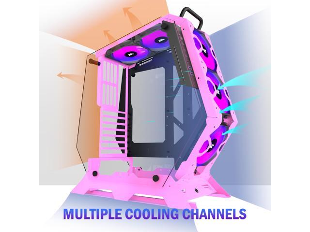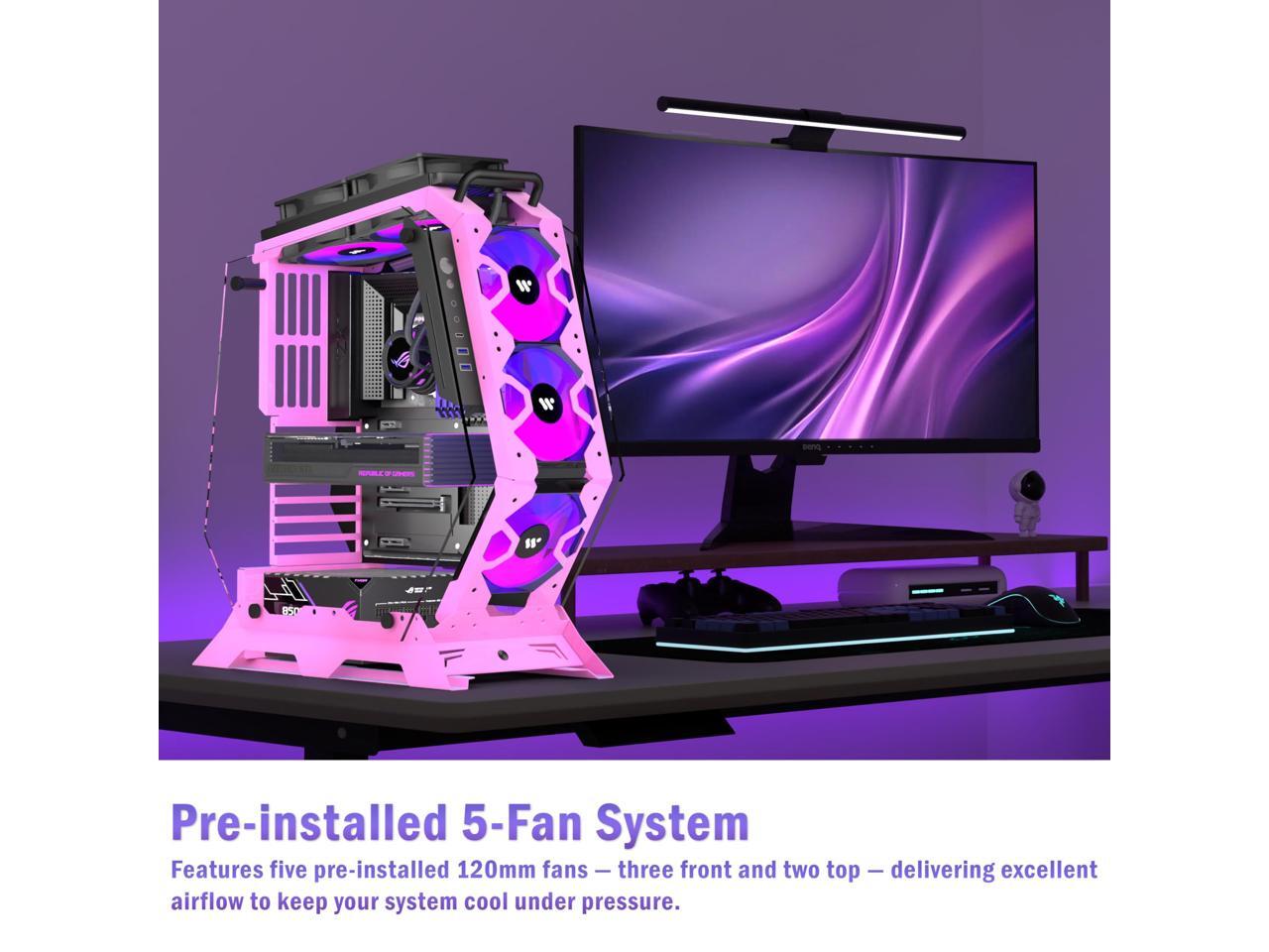 KEDIERS PC Case C570 ATX Mid Tower Tempered Glass Gaming Computer Open Frame Case with 5 PWM ARGB Fans (Pink)