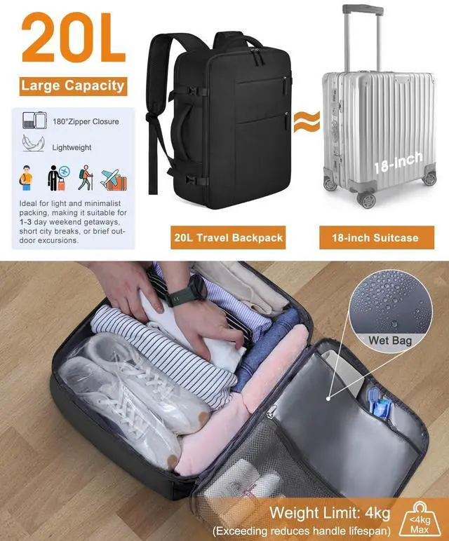 3 in 1 Backpack with 20L Capacity :Side handle helps you seamlessly transition from a backpack to a carry-on bag, providing flexibility for any
