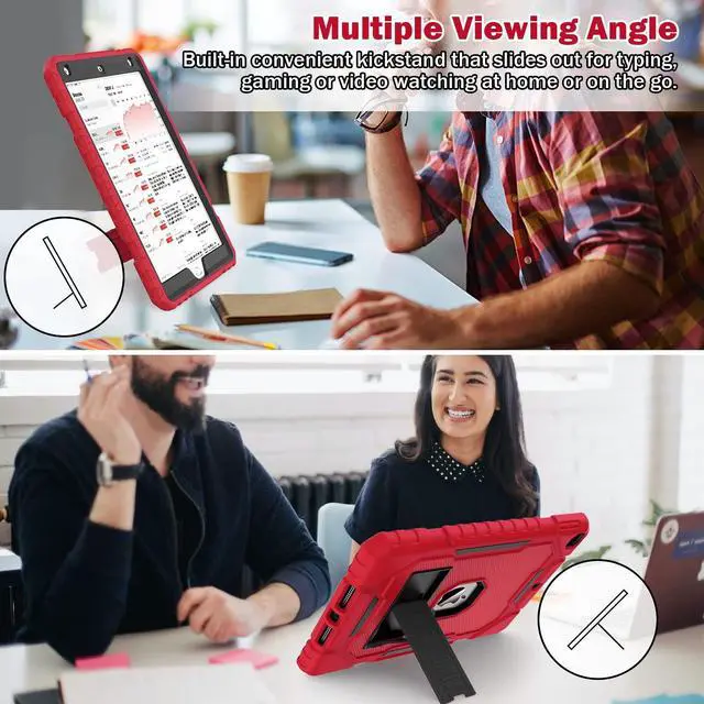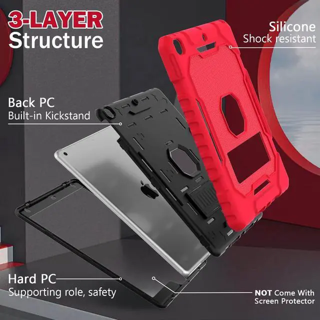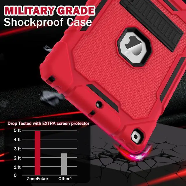 ZoneFoker Case for iPad 9th/8th/7th Generation 2021/2020/2019(10.2 inch), Heavy Duty Shockproof Rugged Protective 10.2" Cover with Built-in Kickstand for iPad 9 8 7 Gen (Red+Black+Black)