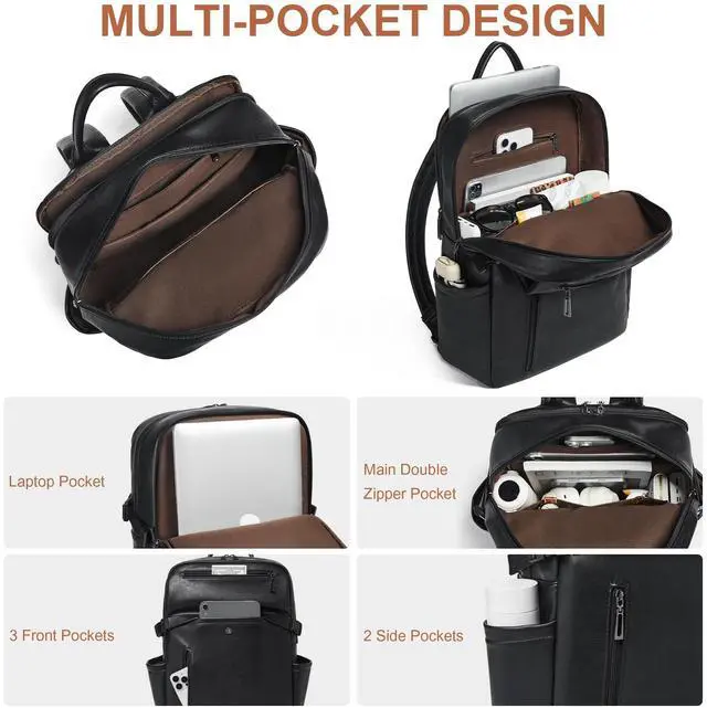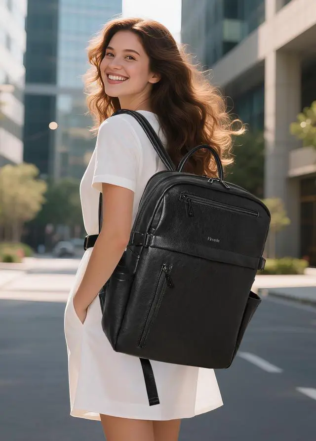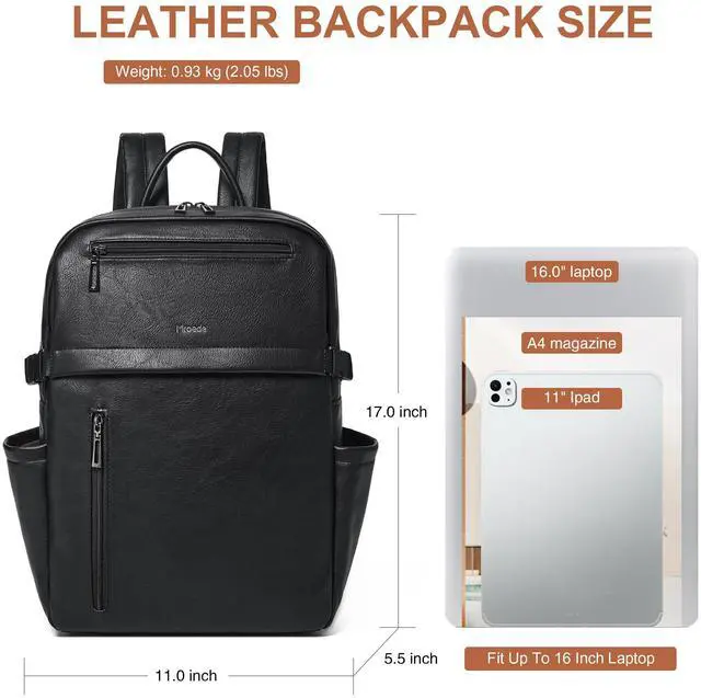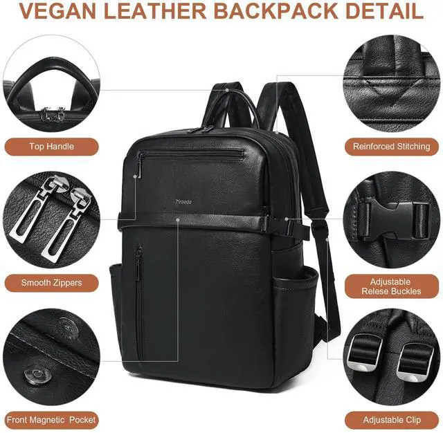 High Quality Leather Backpack : Mroede leather laptop backpack Women made from high quality vegan pu leather and smooth zipper,and each seam is reinforced for durability. This work backpack only can water-resistant against light rain and splashes. Please note: Due to the backpack is made by pu leather if you find it has a little odor is normal,but you needn't worry about it just put the backpack in a ventlated place for 2-3 days it will be gradually disappeared