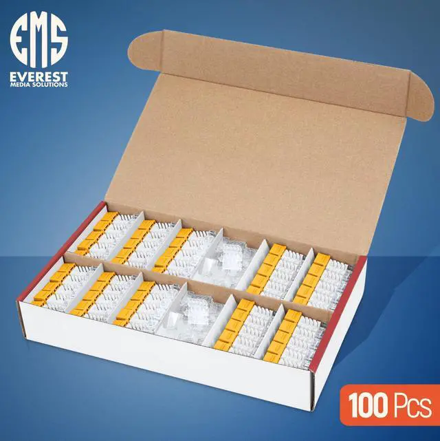 Everest 45° Angled RJ45 Cat6 Keystone Jacks 100-Pack in Yellow - Slim Profile Female RJ45 Connectors - Cat 6 Keystone Jack - Compatible with 45° Angled Speed Termination Tool - 45Term (B0BL3GS7ZY)