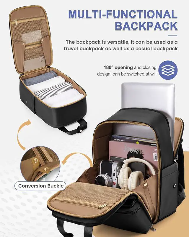 Airline Certified Travel BackpackThe dimension of this travel bag is 40×25×20cm / 15.7×9.8×7.8''. This luggage backpack meets the maximum size requirements for most IATA flights, and its compact design can be placed directly under overhead luggage racks and seats to help you save extra money. Plus, it opens 180° like a suitcase, allowing you to move quickly through airport security