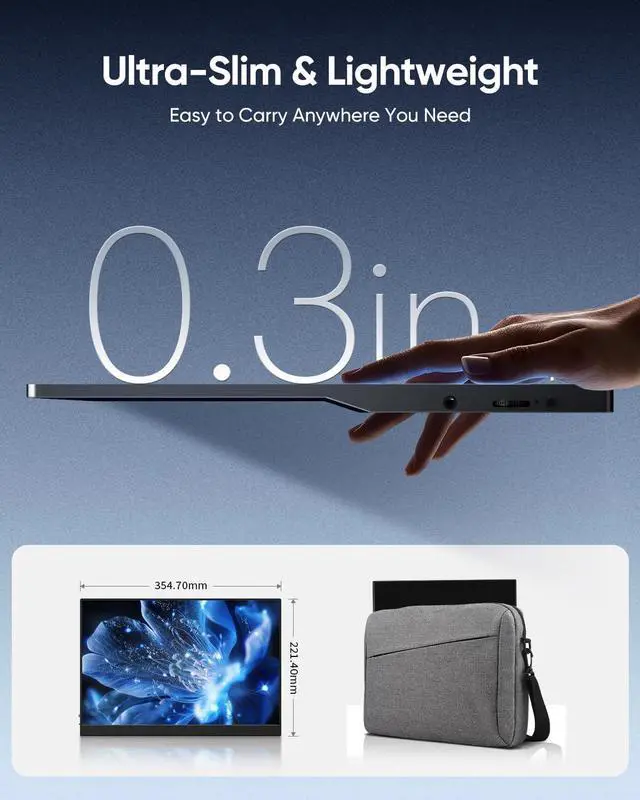 Ultra-Slim, Travel-Ready Design: Take your workspace anywhere. This 15.6-inch portable monitor weighs only 1.4 lbs and measures just 0.35 inches thinperfect for digital nomads, students, and travelers who work on the go