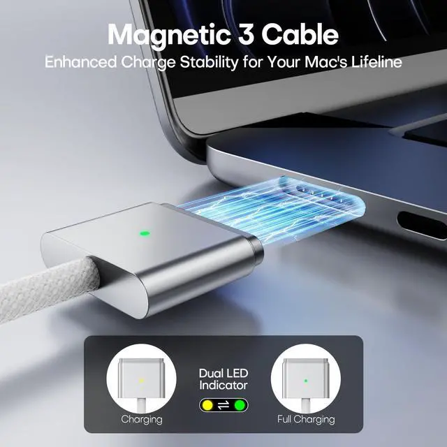 2M / 6.6FT Strong Magnetic Charging Cable: This Gen3 magnetic cable is designed to provide a secure and stable connection for use with MacBook devices, minimizing accidental disconnects and enha