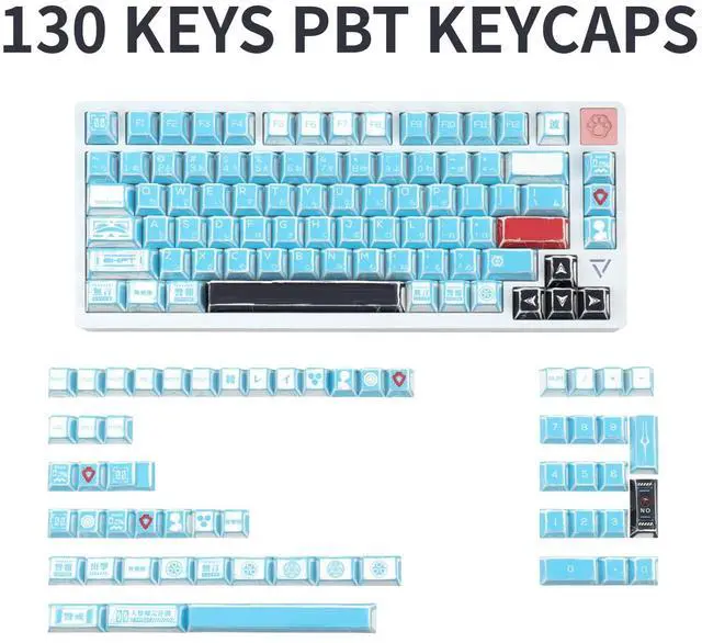 TIMSEKER 130 Keys Blue Manga Japanese Keycap Set, Retro Cherry Profile PBT Keycaps, Custom Anime Key Cap for Mechanical Gaming Keyboard (Not Include Keyboard)