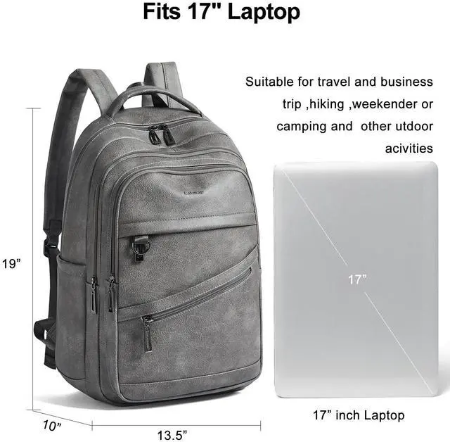 LATMAP 43L Backpack for Women Men - Vegan Leather Backpack Purse Travel Carry-on Bag College Bookbag Work fits 17" Laptop, DimGray