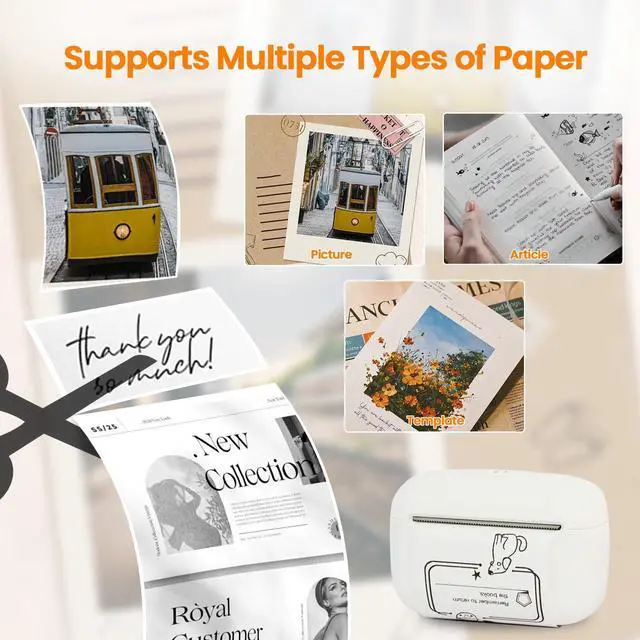 Multi functional application: The white mini printer sticker maker application automatically detects label size without the need for manual settings. Supports multiple fashionable fonts and languages. Add borders and symbols to prominent labels in the style. Easily customize the perfect appearance of text size, style, and formatting. Save template, one click reprint.