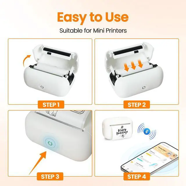Mini Adhesive Sticker Printer: White sticker maker is made of high-quality ABS material and has a beautiful appearance. Comes with 2 x 1.18" white label rolls for clear, convenient, and fast printing, meeting all label needs. making it a great assistant for home organization (marking spices in the kitchen, labeling small bottles/containers, and DIY labels in the pantry), office and school supplies.