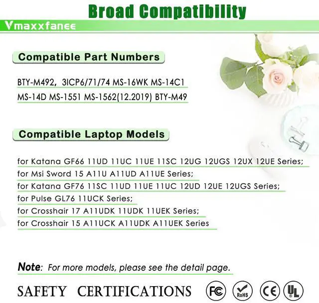 Quality & Security Quality: grade A cells ensure fast charges and low power consumption. Safety: All of our products are Certified by UL / CE / FCC / RoHS for safety. Strict guidelines for compatibility, strict quality control standards to ensure the true capacity, stable current and low self-discharge and standards compliance for environment safety.