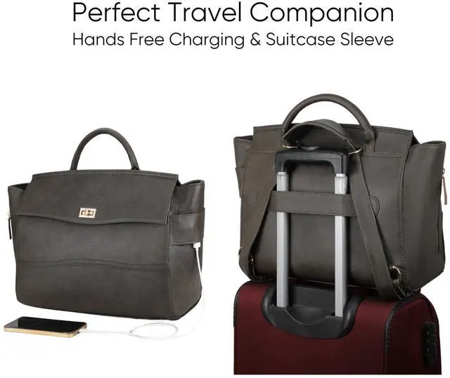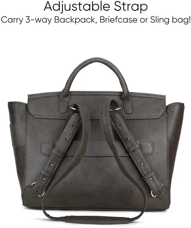 RASHKI ARIA Tote Convertible Backpack 14.5" ^^ Vegan Leather Laptop Bag for Office, College & Travel (Textured Brown)