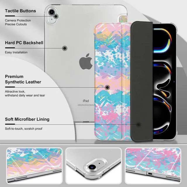 MecBevia Case for iPad (A16) 11th Generation 11 Inch (2025), iPad 10th Generation 10.9 Inch (2022), Hard PC Back Cover, Auto Wake/Sleep, Pastel Waves