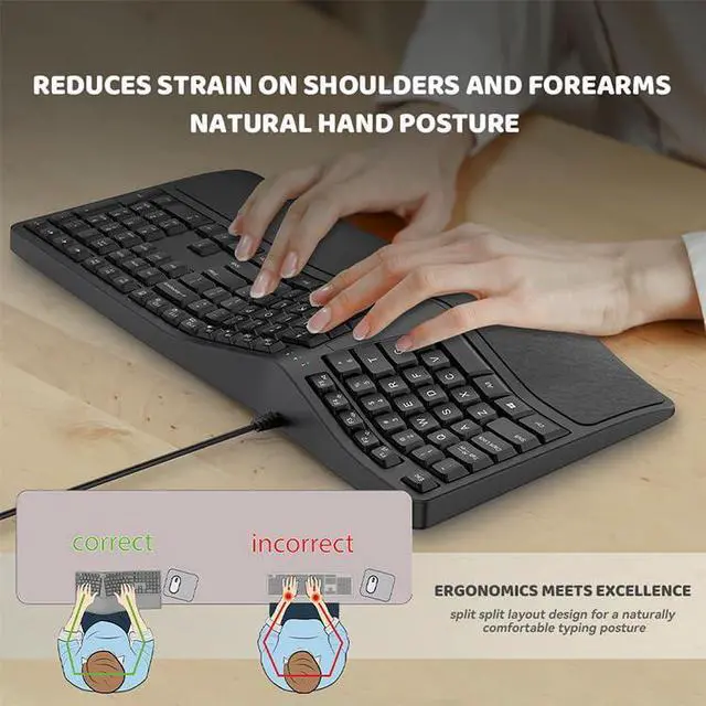 • SurnQiee Ergonomic Keyboard Wired with Cushioned Wrist Rest, 110 Keys Split Keyboard for PC