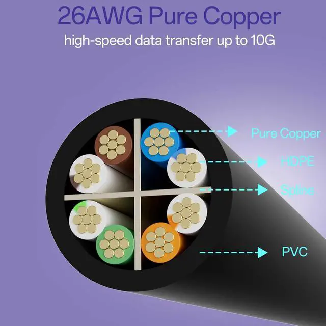 High Performance : Cat 6 ethernet cable 25ft support up to 10 Gbps and 550 Mhz application. Cat6 patch cable are made of 26AWG pure copper with reliable performance. Ethernet cables compliant with ANSI TIA 568.2 D standard.