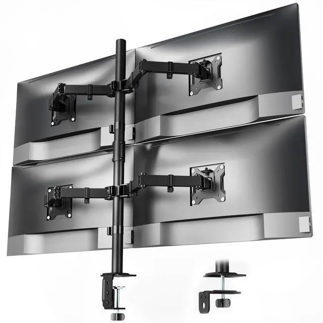 monTEK Quad Monitor Stand Mount, Fully Adjustable Desk Mount for 4 Screen up to 17-32 and 22lbs Capacity Each Arm, Stable Monitor Arm with C Clamp and Grommet Base, VESA 75x75mm/100x100mm