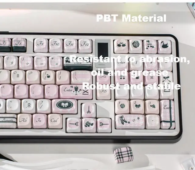 Durable PBT Keycaps: Made from high-quality, textured PBT, these keycaps resist wear, fading, and oils, offering a long-lasting, comfortable typing experience with clear legends and a charming, rounded design