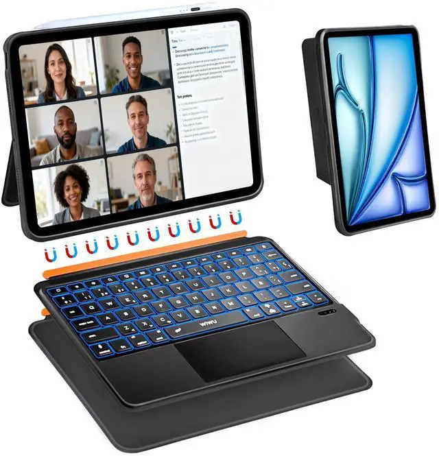 WIWU for iPad Keyboard Case 11 Inch A16 11th /10th Gen 3 in 1 Magnetic Detachable Case Keyboard Adjustable Stand Backlit Keys with Touchpad (Black, for iPad 11/10/Air 5/4/11"(M2/M3) Pro 11" 4/3/2/1)