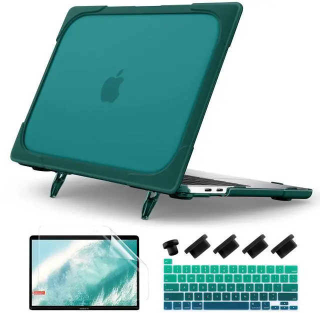 Batianda Heavy Duty Case for New MacBook Pro 13 Inch 2022 2020 A2338 M2 M1 Chip A2289 A2251 with Touch Bar, Shockproof Hard Shell Case with TPU Bumper Fold Kickstand & Keyboard Cover Skin, Deep Teal