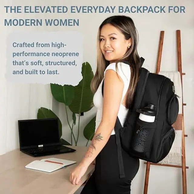 Refined Versatility: The Varibasics Alira Neoprene Backpack Set is the ultimate all-in-one work backpack for women, combining a laptop backpack, lunch bag, and purse in one elevated design. Its sleek, structured silhouette transitions effortlessly from office to gym to travel.