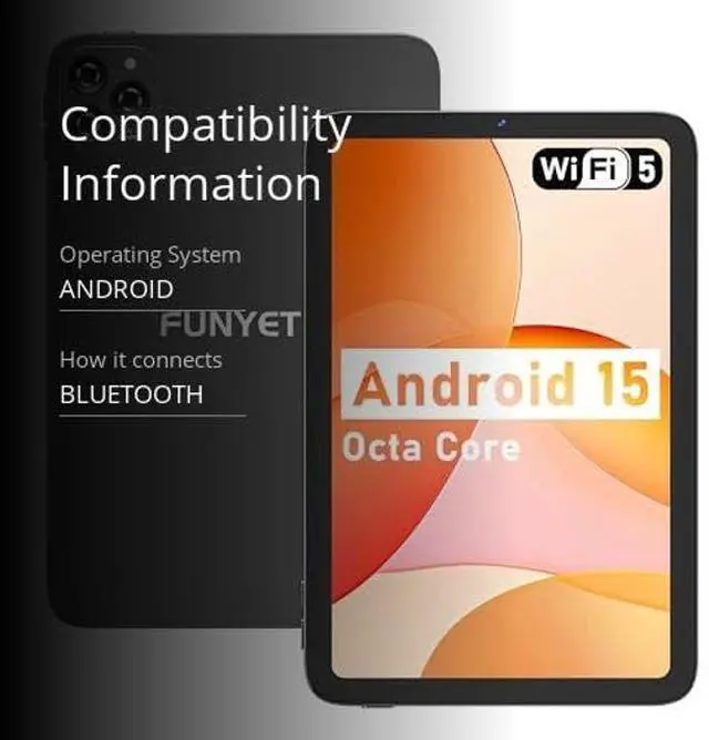 FUNYET Android Tablet, 10 inch Tablets 2025, 8GB (4+4) RAM 128GB Storage (Expandable), Octa-Core Processor, HD Display, Dual Cameras, 6000mAh Battery, GPS, Wi-Fi 5, Bluetooth 5.0, Incell Screen, Metal Shell