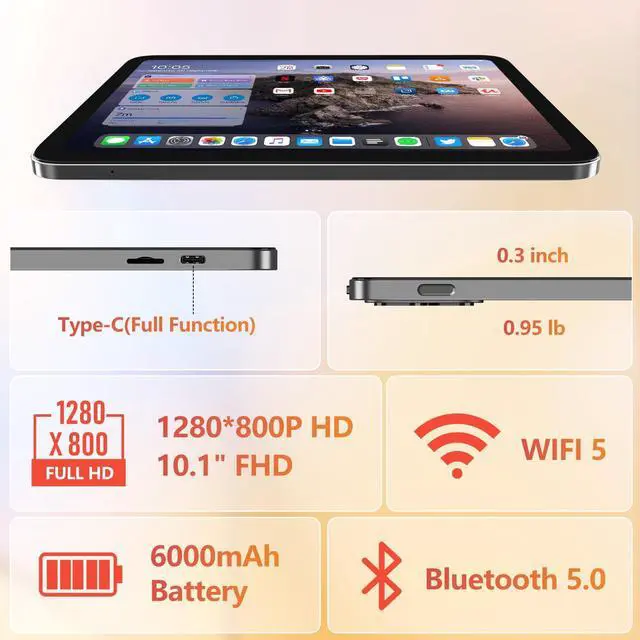 10 inch HD Display with In-Cell TouchEnjoy vibrant visuals on the 10 inch HD LCD screen (800x1280 resolution) with responsive In-cell multi-touch technology, perfect for watching videos, browsing, and gaming.