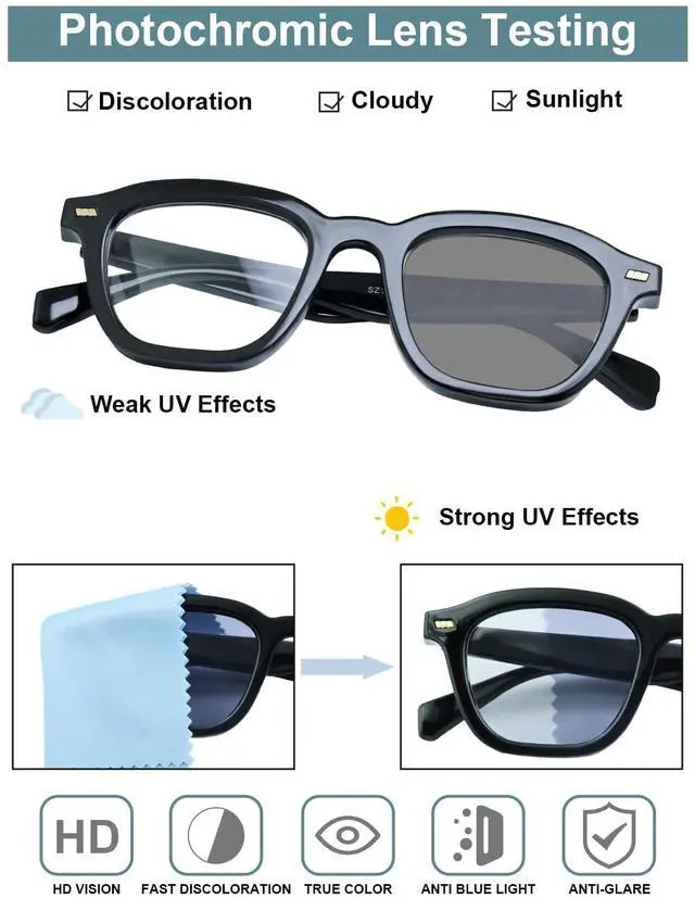 Color Changing Function: 8 seconds of rapid color change to protect your glasses from UV sunlight