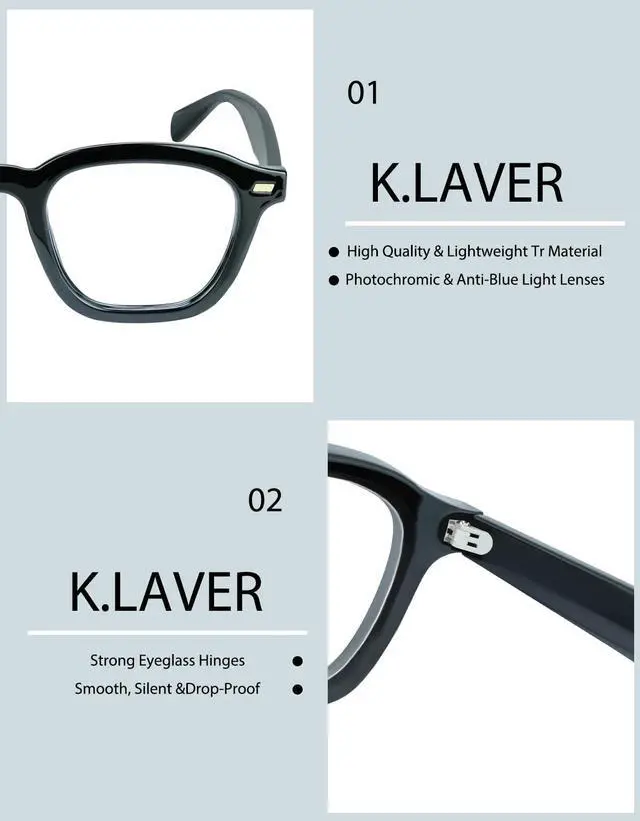 K. LAVER has been committed to designing multi-functional reading glasses, rimless, full-rim, half-rim, photochromic, anti-blue light, anti-UV, bifocal, multi-focal, and fashionable sunglasses.