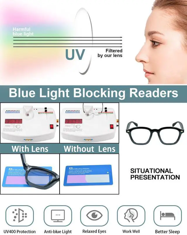 Functions: Photochromic, Anti-blue light, Anti-UV, Anti-fatigue & Dry Eye