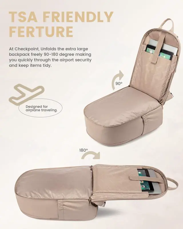 Laptop Protection&180° Wide OpenThe backpack features a specialized 180° wide-opening laptop compartment for easy access to your computer and convenient screening. The thick, padded interior provides extra protection to ensure your device is always safe and stable.