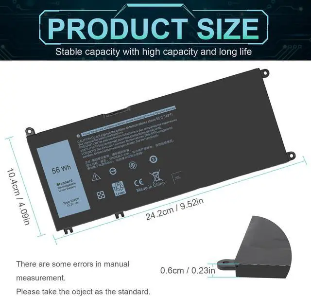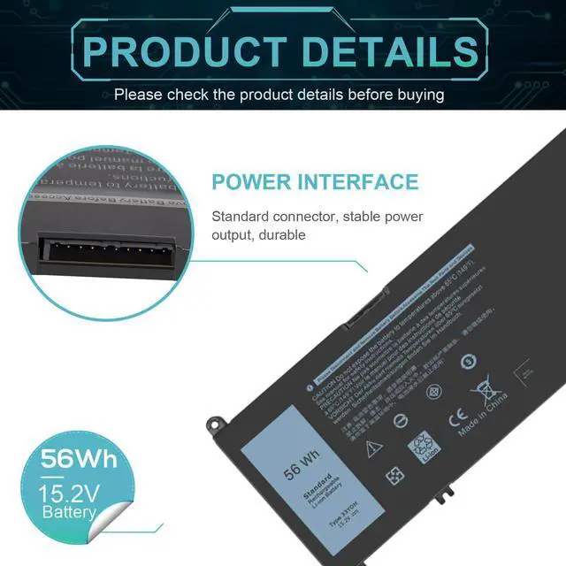 Safety: Replacement Battery for DELL 56WH Battery Type 33YDH are UL/CE-/FCC-/RoHS certified for safety,100% New from Manufacturer. every battery has passed factory testing,overcharge and Overd