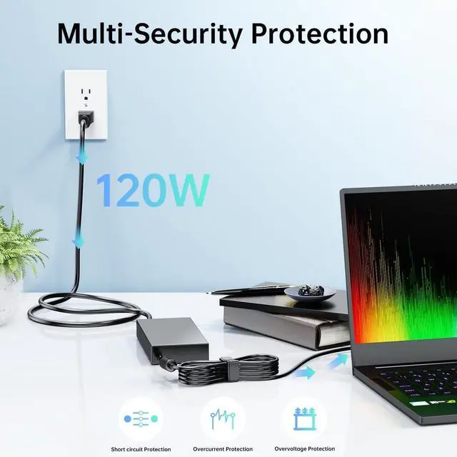 Safety is a top prioritybuilt-in safeguards protect against short-circuit, over-current, over-voltage, and overheating. Its compact, lightweight design ensures easy portability, while the durable shell and 10-foot total cable length (6 ft charger cord + 4 ft power cord) provide flexibility and long-lasting use. Keep your HP docking stations powered with confidence using Dongerdis dependable 120W charger.