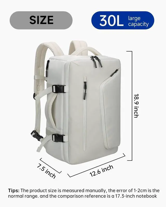 Ideal for Cabin LuggageEngineered to meet the personal item carry-on dimensions set by airlines, our 30L medium backpack sizes at 45 x 30 x 12 cm, making it perfectly suitable for the 18 x 14 x 8 inches (45 x 35 x 20 cm) requirements of Ryanair and Spirit Airlines, ensuring effortless travel.