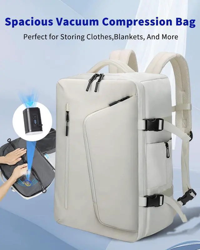 SWICKY Vacuum Backpack with Pump, 40L Vacpack Backpack Compression Seal Bag System, Water Resistant Laptop Carry-On Luggage for Women & Men, Ideal for Travel, Business, WorkWhite