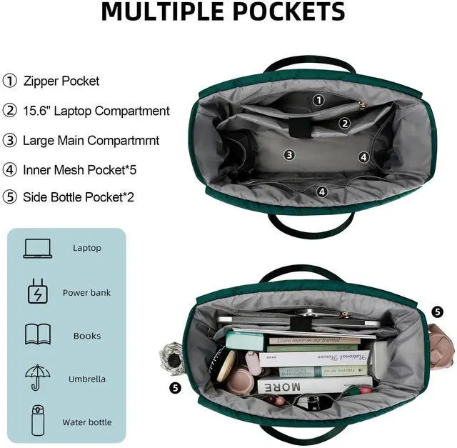 Large Capacity & Thermal Food Compartment: Features a spacious main compartment with 10+ pockets for laptops (up to 15.6"), tablets, documents, and daily essentials. Includes a dedicated insulated lunch zone with leakproof lining, keeping food warm for 5 hours or drinks cold for 6-10 hours