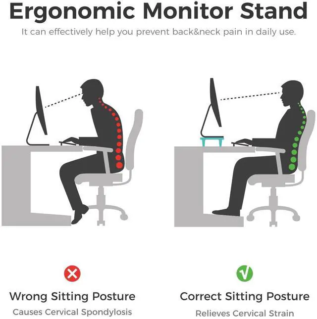 [Relieve Cervical Strain] The Ergonomic monitor riser to help you develop correct sitting habits. Proper sitting posture can effectively help you prevent back & neck pain daily.