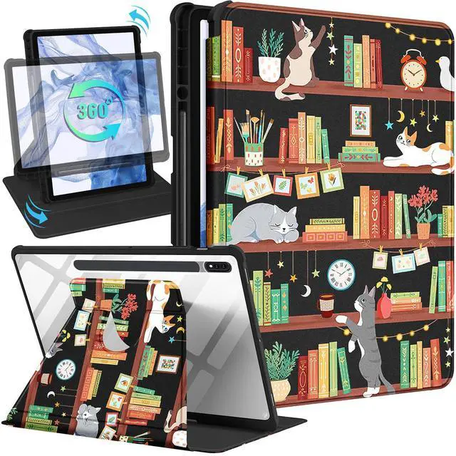 Wazzasoft for Samsung Galaxy Tab S7 Fe/S7 Plus/S8 Plus Case 12.4 Inch Folio Cover Pencil Holder Women Girls Cute Girly Cat Unique Design Rotating Tablet S8 Plus 2022/S7 Plus 2021/S7 FE 5G Cases