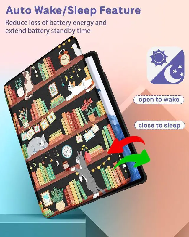 Automatic Sleep/Wake: With built-in magnets, this for Galaxy Tab Tab S7 Fe/S7 Plus/S8 Plus case provides an automatic sleep/wake feature that preserves battery life and extends your tablet's standby time.