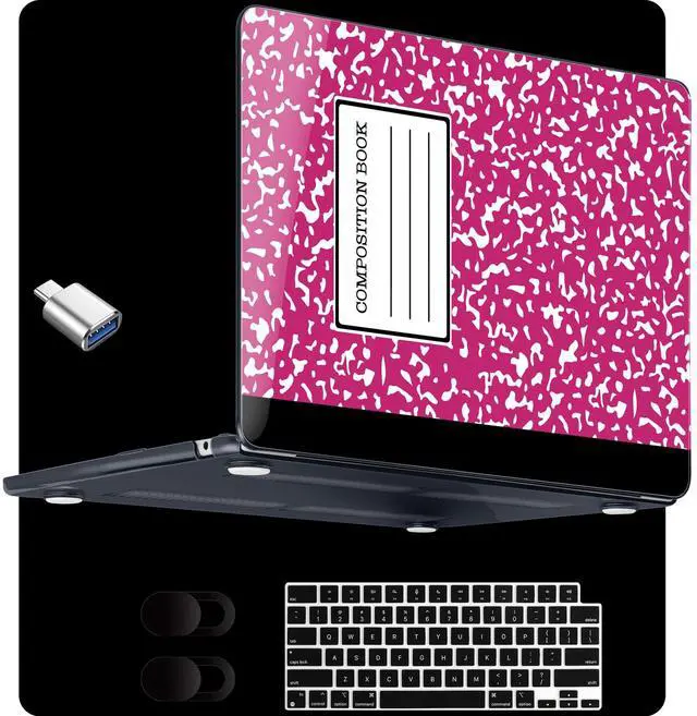 MEEgoodo for M4/M3/M2 MacBook Air 13.6 inch Case 2025 2024 2022(Fit Model A3240/A3113/A2681), Clear Laptop Shell Cases for MacBook Air 13-inch, Rose Red Composition Book