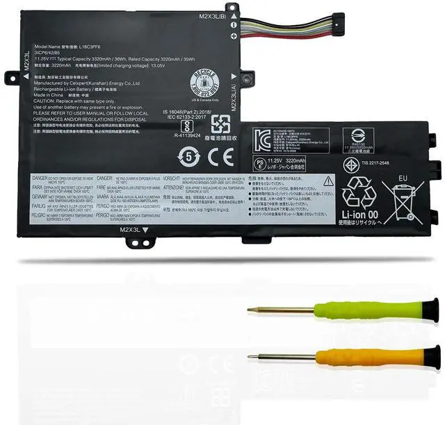 Specifications: Model Name: L18C3PF6 standard Rechargeable Li-ion Battery; Battery Type: Lithium_ion; Voltage: 11.25 V; Capacity: 36 Wh 3320 mAh. Color: Black. Packages includes:1x L18C3PF6 Laptop Battery, 2 x Screwdrivers for easy installation, 1x Instruction