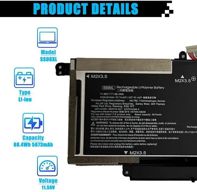 Replacement for P/N SS06XL M73478-005 M64310-AC1 HSTNN-OB2M TPN-DB0O M64310-271 SS06068XL.