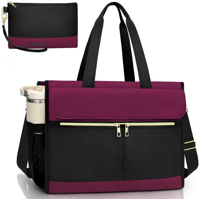 Side Pockets & Cup Holder: Convenient side slots fit 40oz water bottles or 30oz tumblers, keepingbeverages upright and accessible. ldeal as a teacher tote, nurse bag, school bag, or travelhandbag This multi-pocket laptop bag for women effortlessly transitions into a professional work bag, computer bag, diaper tote, everyday tote, or travel purse, making it the perfect gift for women, nurses, teachers, students, and busy moms.