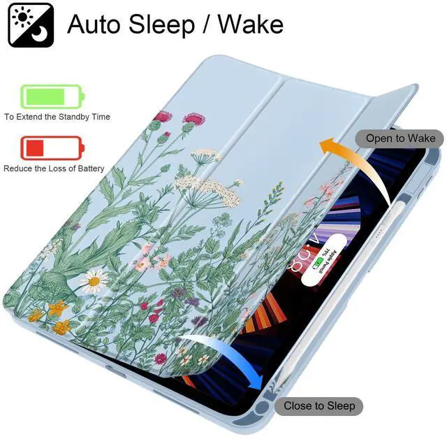 Tri-Fold Standing & Auto Sleep/Wake: The Tri-Fold front provides you two standing positions for viewing or typing needs; Front Cover can automatically puts your iPad Air sleep/wake when the lid turn on/off