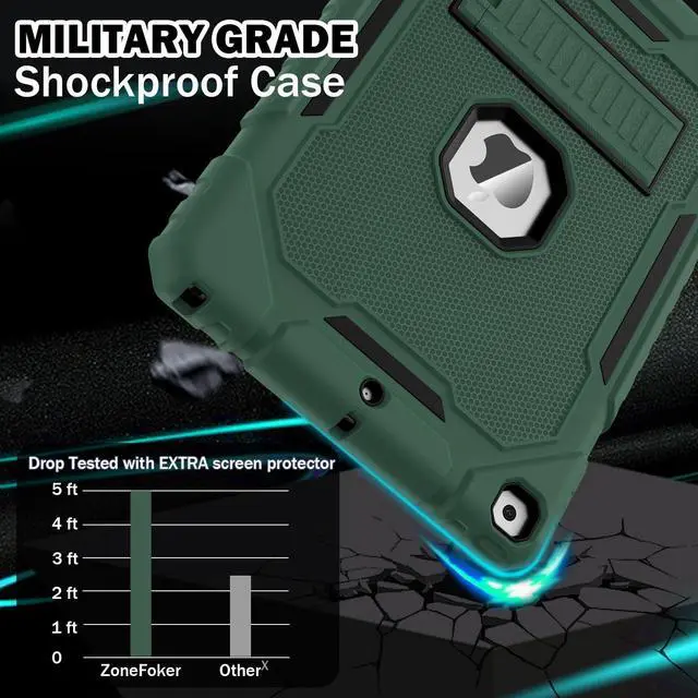 Military Grade Drop Protection: ZoneFoker iPad case 9th/8th/7th generation is made of high quality flexible Silicone and durable hard PC provides a great Protection to your tablet against scratches and accidental drops, bumps, shock