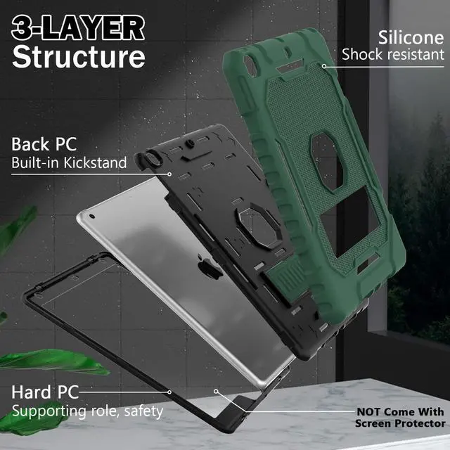 ZoneFoker Case for iPad 9th/8th/7th Generation 2021/2020/2019( 10.2 inch), Heavy Duty Military Grade Shockproof Rugged Protective 10.2" Cover with Built-in Stand for iPad 9 8 7 Gen (DeepGreen+Black)