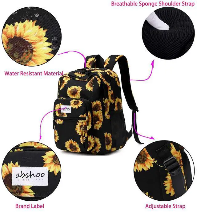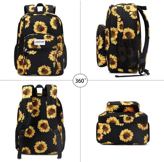abshoo Classical Basic Womens Sunflower School Backpack For Teen Girls Water Resistant College Bookbag (Sunflower Black)