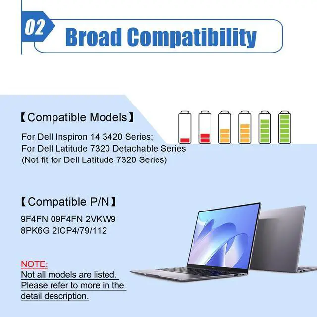 Compatible Laptop ModelsFor Dell Inspiron 14 3420 Series; For Dell Latitude 7320 Detachable Series (Not fit for Dell Latitude 7320 Series)